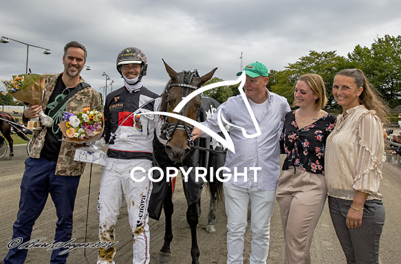 - Beskrivelse: LORRAINE med Michael Lønborg 1. løbs vinder, på Charlottenlund d. 2024-08-24. Photo: Burt Seeger.