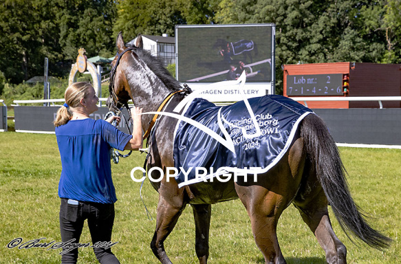 - Beskrivelse: KING FERDINAND med Oliver Wilson 2. løbs vinder på Klampenborg d. 2024-08-31. Photo: Burt Seeger.