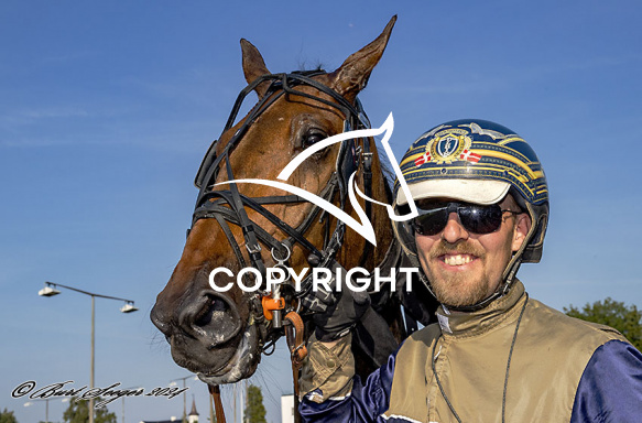 - Beskrivelse: HOLGER J J med Ulrik Christoffersen 4. løbs vinder, på Charlottenlund d. 2024-09-03. Photo: Burt Seeger.