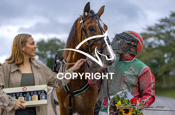 - Beskrivelse: KRONPRINSEN med Steen Juul 2. løbs vinder, på Charlottenlund d. 2024-09-26. Photo: Burt Seeger.