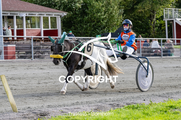 - Billede Beskrivelse: Hjortagers Trisse med Tilde Mundus Nielsen Bornholms Brand Park 28 september 2024 Fotograf Torben Ager - Travfoto Bornholm