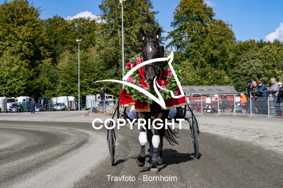 - Billede Beskrivelse: Kometen Baunely med Martin Sjøholm Jensen Bornholms Brand Park 28 september 2024 Fotograf Torben Ager - Travfoto Bornholm