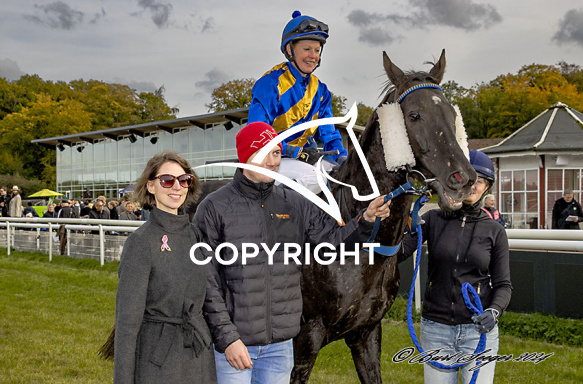 - Beskrivelse: MIDNIGHT OIL med Anna Pilroth 6. løbs vinder på Klampenborg d. 2024-10-12. Photo: Burt Seeger.