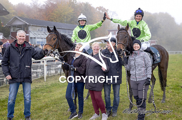 - Billede Beskrivelse: NEVERCANTELL med Stina Östlund 6. løbs vinder på Klampenborg d. 2024-10-26. Photo: Burt Seeger.