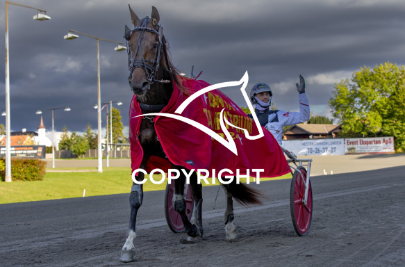 - Billede Beskrivelse: KARAT C N med Michael Lønborg 7. løbs vinder, af Dansk Trav Kriterium 2024, på Charlottenlund d. 2024-10.06. Photo: Burt Seeger.