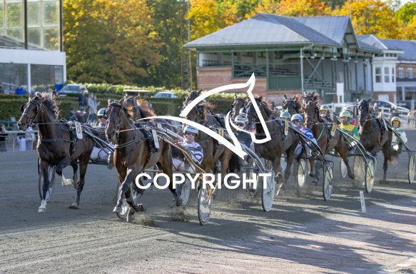 - Billede Beskrivelse: KARAT C N med Michael Lønborg 7. løbs vinder, af Dansk Trav Kriterium 2024, på Charlottenlund d. 2024-10.06. Photo: Burt Seeger.