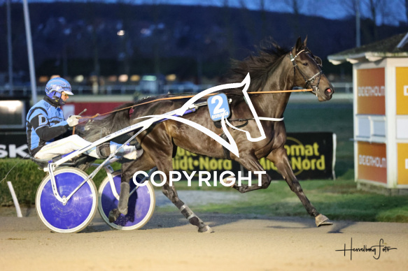 - Beskrivelse: Fredagstrav LORRAINE med Michael Lønborg vinder dagens 2 løb. - 2-åringernes Efterårsserie - "Made in Denmark" - Amerikanerløb. Spar Nord Arena-Aalborg Væddeløbsbane d. 29/11-2024. Fotograf: Hesselborg Foto