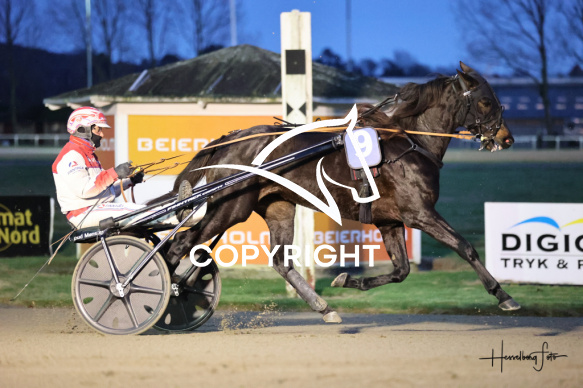 - Beskrivelse: Fredagstrav LORRAINE med Michael Lønborg vinder dagens 2 løb. - 2-åringernes Efterårsserie - "Made in Denmark" - Amerikanerløb. Spar Nord Arena-Aalborg Væddeløbsbane d. 29/11-2024. Fotograf: Hesselborg Foto