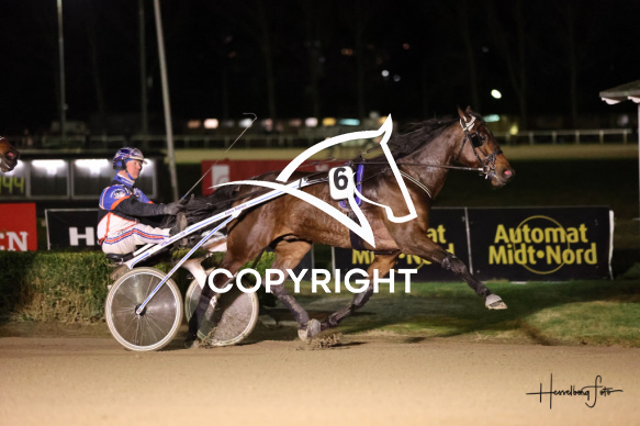 - Beskrivelse: JOY OF MAGIC med Anders Pedersen vinder dagens 5 løb. Spar Nord Arena-Aalborg Væddeløbsbane d. 29/11-2024. Fotograf: Hesselborg Foto