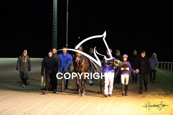 - Beskrivelse: JOY OF MAGIC med Anders Pedersen vinder dagens 5 løb. Spar Nord Arena-Aalborg Væddeløbsbane d. 29/11-2024. Fotograf: Hesselborg Foto