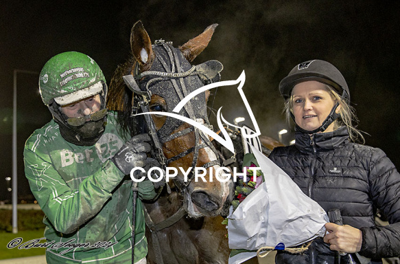 - Billede Beskrivelse: HIGHFIVE E M med Rene Kjær 5. løbs vinder, på Charlottenlund d. 2024-12-27. Photo: Burt Seeger.