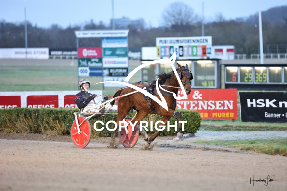- Beskrivelse: IN MY WAY DAMGÅRD med Michael Lønborg vinder dagens 6 løb her på Spar Nord Arena-Aalborg Væddeløbsbane d. 29/12-2024. Fotograf: Hesselborg Foto