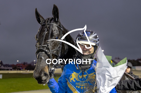 - Beskrivelse: NIGEL FORTUNA med Stefan Persson 1. løbs vinder, på Charlottenlund d. 2024-12-27. Photo: Burt Seeger.