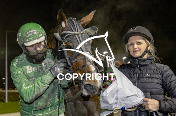 - Billede Beskrivelse: HIGHFIVE E M med Rene Kjær 5. løbs vinder, på Charlottenlund d. 2024-12-27. Photo: Burt Seeger.