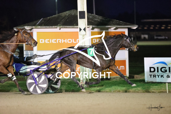 - Beskrivelse: GIRL HAPPY E P med Mads Henriksen vinder dagens 4 løb her på Spar Nord Arena-Aalborg Væddeløbsbane d. 17/1-2025. (Amerikanerløb) Fotograf: Hesselborg Foto