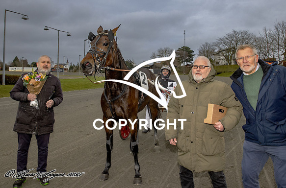- Billede Beskrivelse: HOKITA med Michael Lønborg 5. løbs vinder, på Charlottenlund d. 2025-02-02. Photo: Burt Seeger.