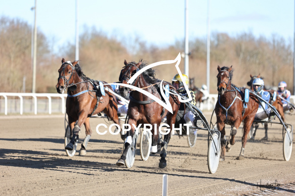 - Beskrivelse: DONTGETINMYWAY med Birger Jørgensen vinder dagens 2 lunch løb. (Amrikanerløb) her på Spar Nord Arena-Aalborg Væddeløbsbane d. 17/2-2025. Fotograf: Hesselborg Foto