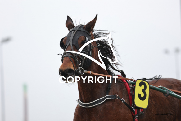 - Beskrivelse: HANNIBAL P med Birger Jørgensen vinder dagens 1 løb (Amerikanerløb m. justering af startspor) her på Spar Nord Arena-Aalborg Væddeløbsbane d. 22/2-2025. Fotograf: Hesselborg Foto