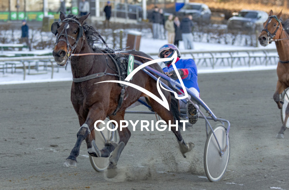 - Billede Beskrivelse: JADA med Rene Jonassen 4. løbs vinder, på Charlottenlund d. 2025-02-16. Photo: Burt Seeger.