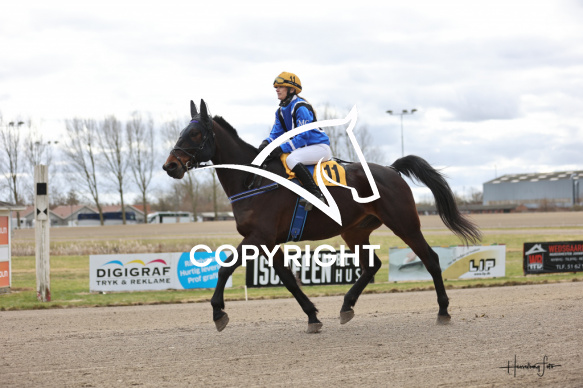 - Beskrivelse: IMPALA med Anette Uglebjerg vinder dagens 8 løb (Monteformløb 1.19.5.) her på, Spar Nord Arena-Aalborg Væddeløbsbane d. 15/3-2025. Fotograf: Hesselborg Foto