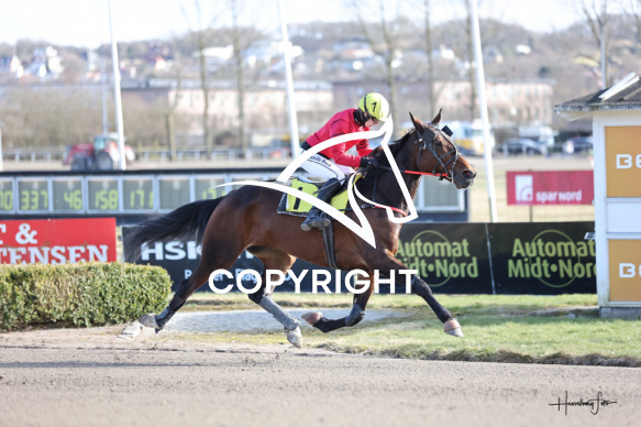 - Beskrivelse: IMPALA med Anette Uglebjerg vinder dagens 8 løb (Monteformløb 1.19.5.) her på, Spar Nord Arena-Aalborg Væddeløbsbane d. 15/3-2025. Fotograf: Hesselborg Foto