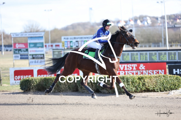 - Beskrivelse: IMPALA med Anette Uglebjerg vinder dagens 8 løb (Monteformløb 1.19.5.) her på, Spar Nord Arena-Aalborg Væddeløbsbane d. 15/3-2025. Fotograf: Hesselborg Foto