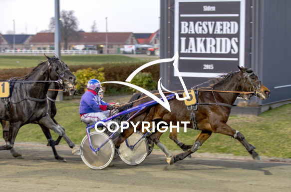 - Billede Beskrivelse: JADA med Rene Jonassen 7. løbs vinder, på Charlottenlund d. 2025-03-07. Photo: Burt Seeger.