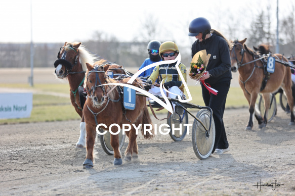 - Beskrivelse: Vokal From med Christian Mortensen vinder dagens ponyløb her på Spar Nord Arena-Aalborg Væddeløbsbane d. 23/3-2025. Fotograf: Hesselborg Foto