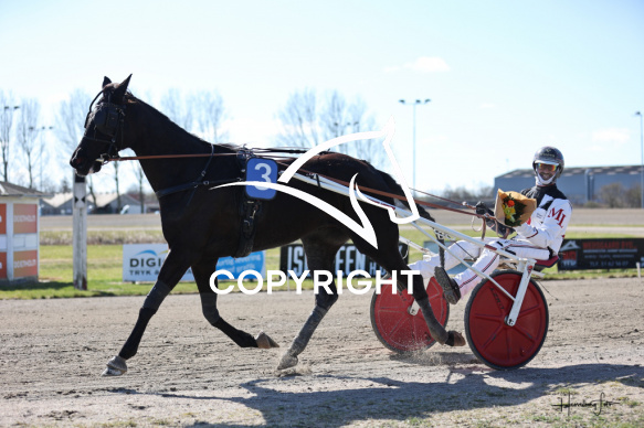 - Beskrivelse: KOMBUCHA med Michael Lønborg 2. løbs vinder, Amerikanerløb, på Spar Nord Arena-Aalborg Væddeløbsbane d. 31/3-2025. Fotograf: Hesselborg Foto.