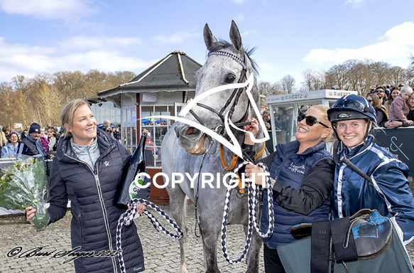 - Beskrivelse: SANARY med Annie Nilsson-Lindahl 5. løbs vinder af TUBORG ÅBNINGSLØB 2025, på Klampenborg d. 2024-04-12. Photo: Burt Seeger.