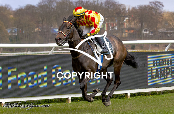 - Beskrivelse: FIRST med Carlos Lopez 3. løbs vinder på Klampenborg d. 2024-04-12. Photo: Burt Seeger.