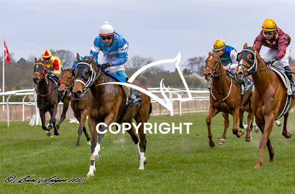 - Billede Beskrivelse: TEARAWAY TWO med Angel Alekov Yuliyanov 2. løbs vinder på Klampenborg d. 2024-04-12. Photo: Burt Seeger.