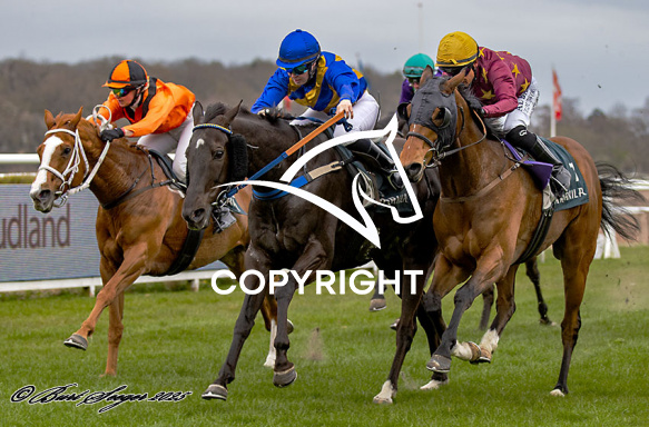 - Billede Beskrivelse: MIDNIGHT OIL med Anna Pilroth 1. løbs vinder på Klampenborg d. 2024-04-12. Photo: Burt Seeger.