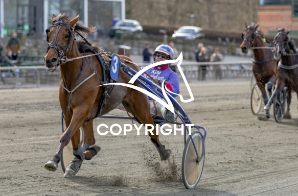 - Beskrivelse: ICONIC RIDE med Rene Jonassen 2. løbs vinder, på Charlottenlund d. 2025-04.11. Photo: Burt Seeger.