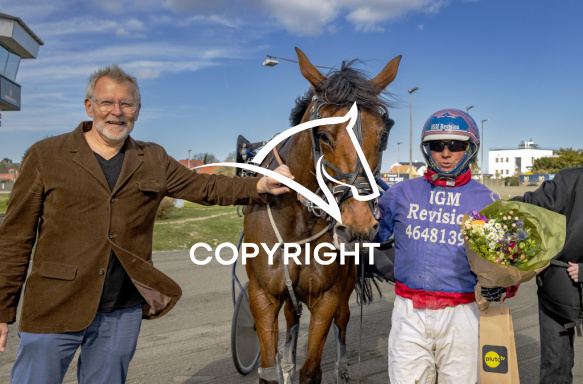 - Beskrivelse: ICONIC RIDE med Rene Jonassen 2. løbs vinder, på Charlottenlund d. 2025-04.11. Photo: Burt Seeger.