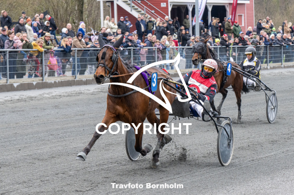 - Beskrivelse: Honey Dream med John Gommans Bornholms Brand Park 19 april 2025 Fotograf Torben Ager - Travfoto Bornholm