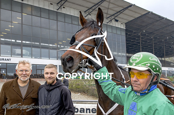 - Billede Beskrivelse: MANUEL med Teddy Wang 4. løbs vinder, på Charlottenlund d. 2025-04.20. Photo: Burt Seeger.