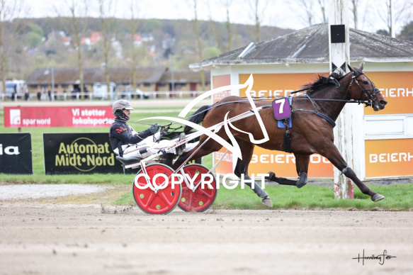 - Beskrivelse: HIT IT FOR REAL med Michael Lønborg vinder dagens 8 løb her på Spar Nord Arena-Aalborg Væddeløbsbane d. 21/4-2025. Fotograf: Hesselborg Foto