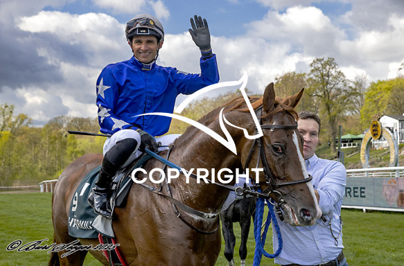 - Billede Beskrivelse: NO SURRENDER med Elione Chaves 3. løbs vinder på Klampenborg d. 2024-04-26. Photo: Burt Seeger.