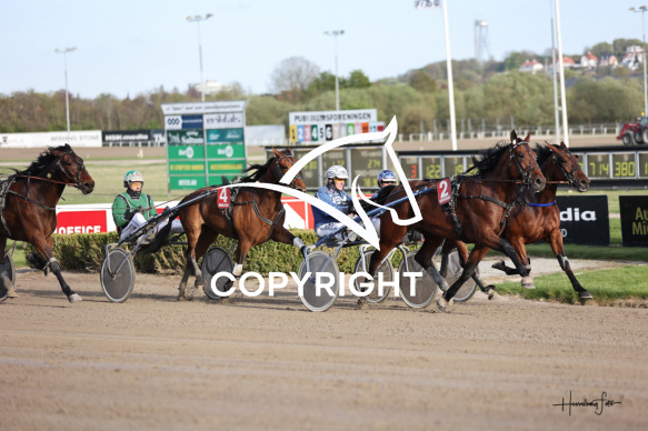 - Beskrivelse: MACK ONE med Gordon Dahl vinder dagens 3 løb (Amerikanerløb) her på Spar Nord Arena-Aalborg Væddeløbsbane d. 28/4-2025. Fotograf: Hesselborg Foto