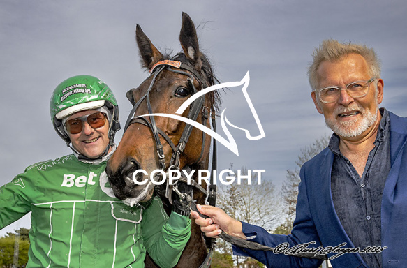 - Billede Beskrivelse: KNIGHT'N DAY KEKA med Rene Kjær 4. løbs vinder, på Charlottenlund d. 2025-05.02. Photo: Burt Seeger.