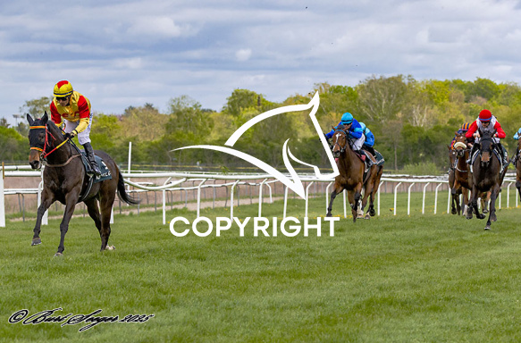 - Beskrivelse: EKO'S DREAM med Carlos Lopez 4. løbs vinder på Klampenborg d. 2024-05-03. Photo: Burt Seeger.