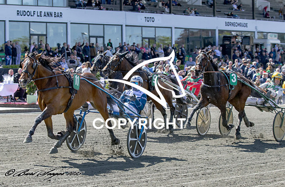 - Billede Beskrivelse: JUSTLIKEJESSEJAMES med Magnus A. Djuse 4. løbs vinder, på Charlottenlund d. 2025-05.11. Photo: Burt Seeger.