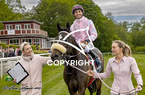 - Billede Beskrivelse: MISS LILIBETH med Mikkel Mortensen 1. løbs vinder på Klampenborg d. 2024-05-17. Photo: Burt Seeger.