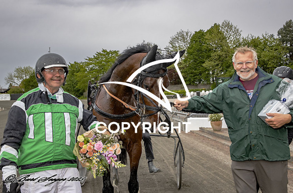 - Billede Beskrivelse: HE DARES THE DEVIL med Søren Kolberg 6. løbs vinder, på Charlottenlund d. 2025-05.18. Photo: Burt Seeger.
