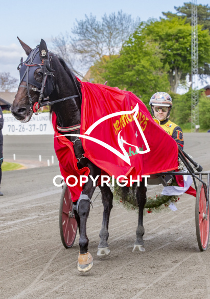 - Billede Beskrivelse: DIVA EK med Mats E. Djuse 11. løbs vinder, på Charlottenlund d. 2025-05.11. Photo: Burt Seeger.