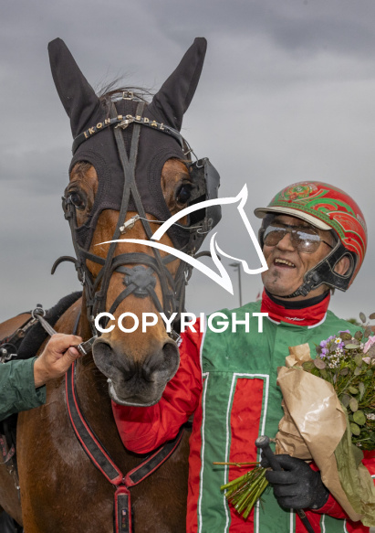 - Beskrivelse: IKON EGEDAL med Steen Juul 5. løbs vinder, på Charlottenlund d. 2025-05.18. Photo: Burt Seeger.