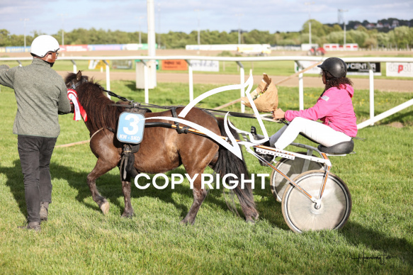 - Beskrivelse: Vinderen af dagens ponyløb blev BLACK STAR med Vilja Søndergaard Larsson Spar Nord Arena-Aalborg Væddeløbsbane d. 2/6-2025. Fotograf: Hesselborg Foto
