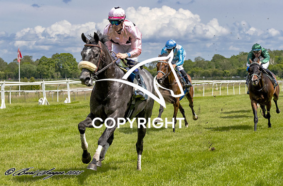 - Billede Beskrivelse: GO GO FLAME MED NICOLAJ STOTT 3. løbs vinder på Klampenborg d. 2024-06-07. Photo: Burt Seeger.