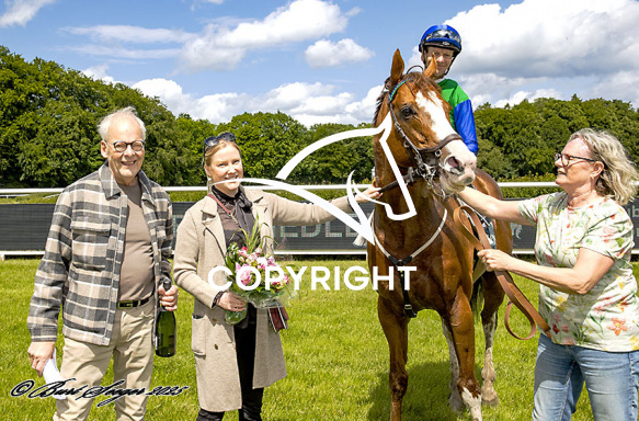 - Billede Beskrivelse: EL GUANCHE med Jacob Johansen 2. løbs vinder på Klampenborg d. 2024-06-07. Photo: Burt Seeger.